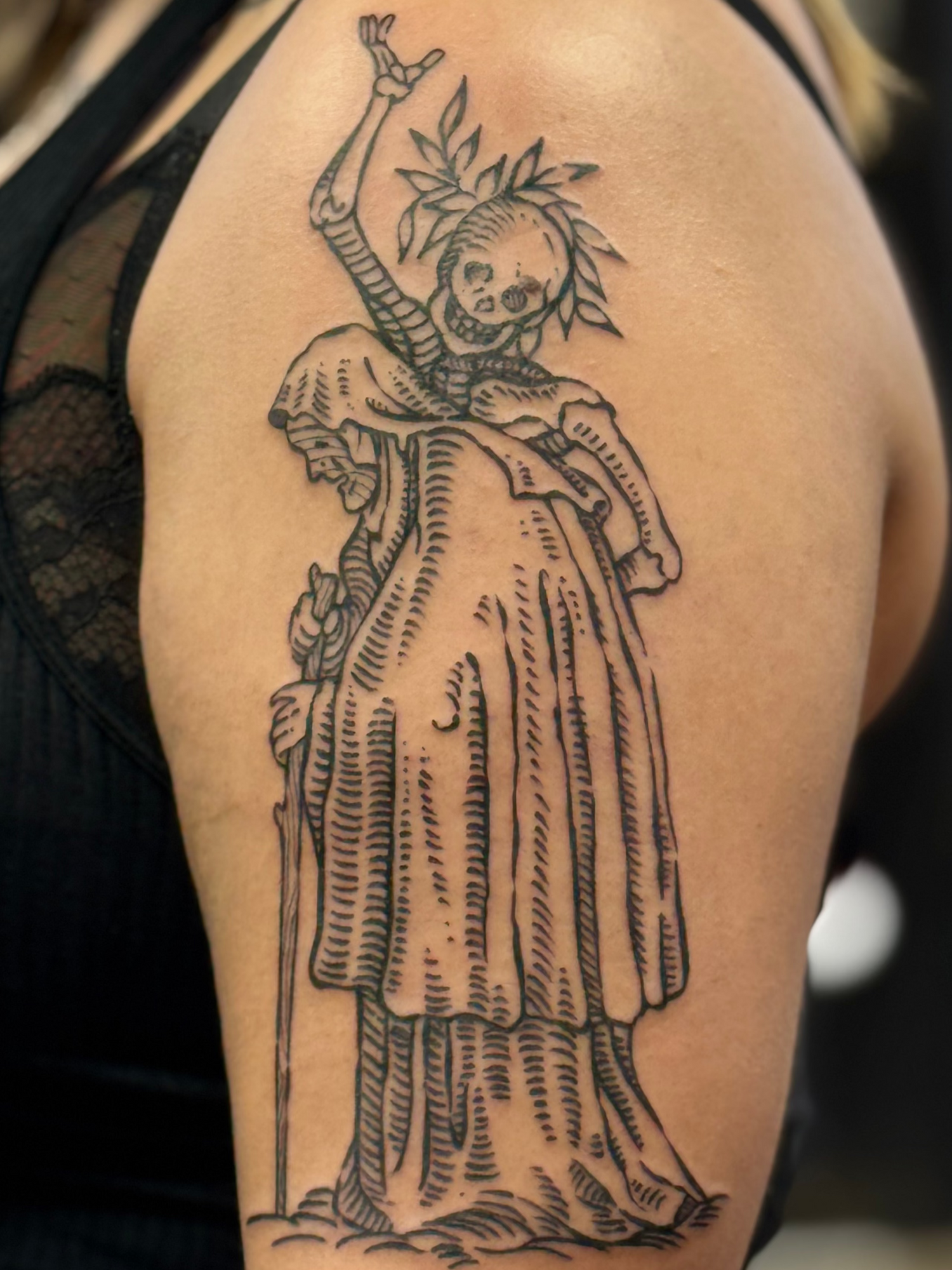 Vanessa has been an artist her whole life, however tattooing came into her life about 10 years ago. She is completely devoted to the industry & her career- she continues to love everything about it. She strives to be versatile in many different styles but favors floral & anything Macabre.